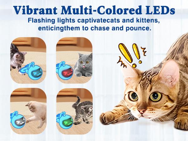 Interactive Cat Toys for Indoor Cats, Cat Ball Toys/Kitten Toys with Remote Control & LED Rainbow Lights, Fun Tracker, Automatic Rolling Chase Ball with Fluffy Tail Automatic Cat-Mykq